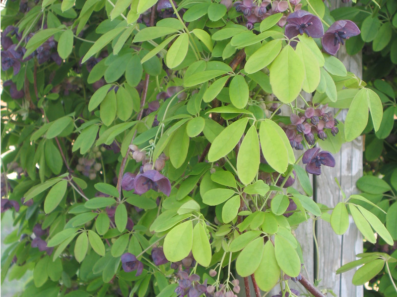 L’Akebia quinata è una pianta a crescita rapida, in grado di raggiungere un’altezza di 6-10 metri se supportata adeguatamente. Fiorisce in primavera, producendo fiori profumati color porpora che possono essere seguiti da frutti ornamentali in condizioni ideali.