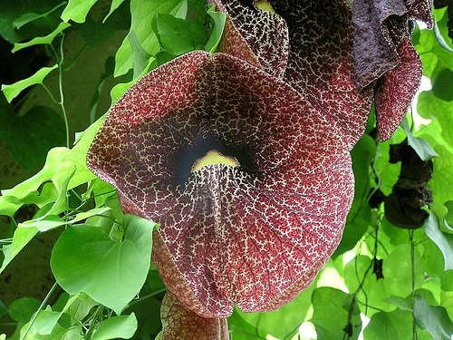 L’Aristolochia gigantea è conosciuta anche come ‘Dutchman’s Pipe’ per la forma caratteristica dei suoi fiori. Questa pianta è molto apprezzata per il suo aspetto esotico e per il fatto che attira insetti impollinatori, contribuendo così alla biodiversità del giardino.