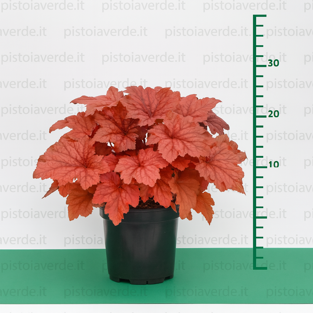 Questa varietà di Heuchera ha una crescita moderata, raggiungendo un’altezza massima di circa 30-40 cm. La sua larghezza può estendersi fino a 50 cm, rendendola ideale per bordure e aiuole.