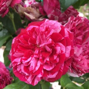 I fiori presentano una tonalità rosa con spruzzature caratteristiche, offrendo un aspetto distintivo. Emanano una leggera fragranza, aggiungendo una delicata nota olfattiva al giardino.